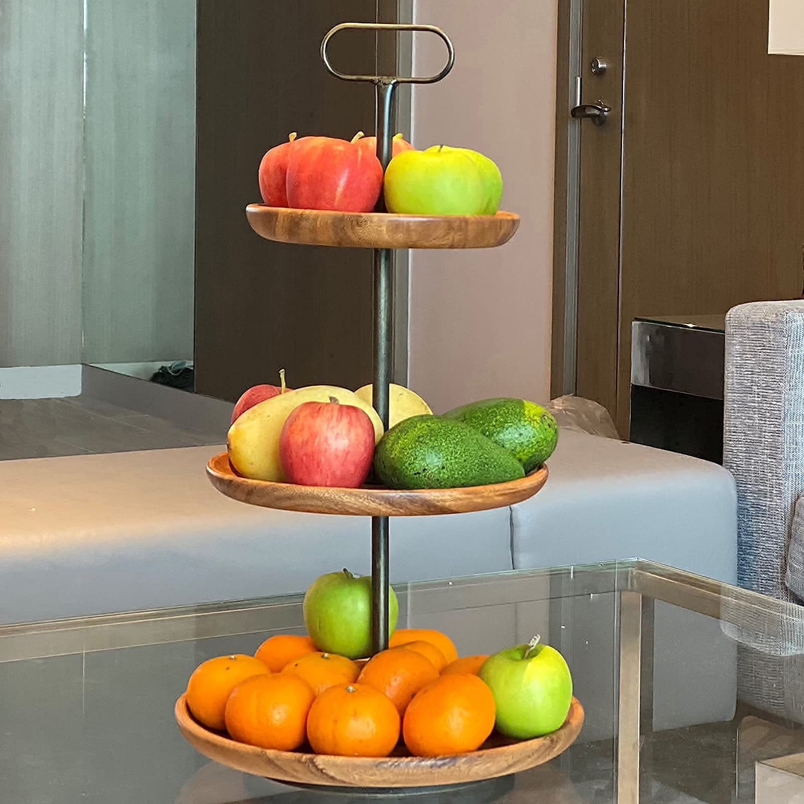 - Natural Acacia Wood Tray: Crafted from natural Acacia wood, this 3-tier serving tray is perfect for grazing table supplies. Its wooden tiered tray design offers a timeless look for any buffet server.