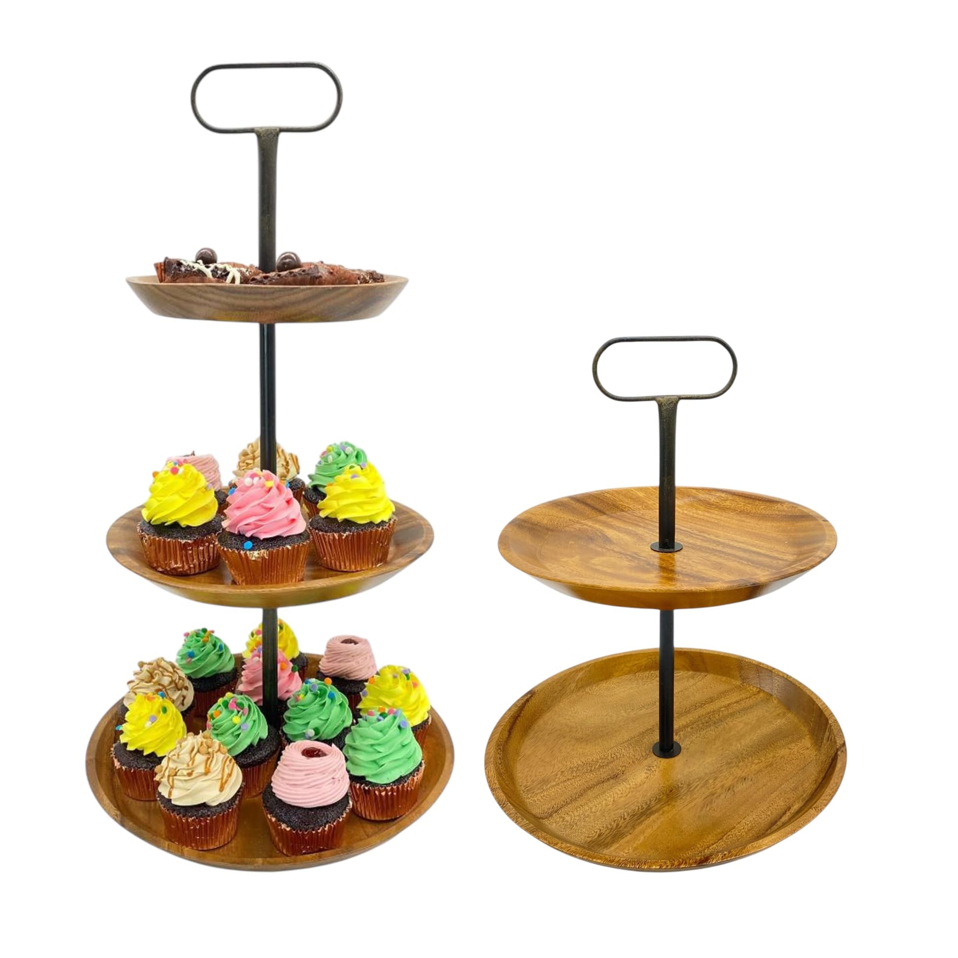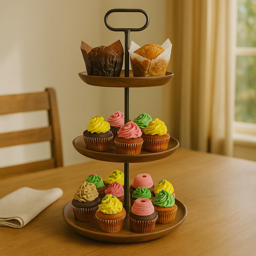 - Acacia Wood Cupcake Stand: This Acacia wood cupcake stand can accommodate approximately 24 cupcakes, making it perfect for any event. The 3-tier serving tray wooden design provides elegance and functionality for your dessert display.