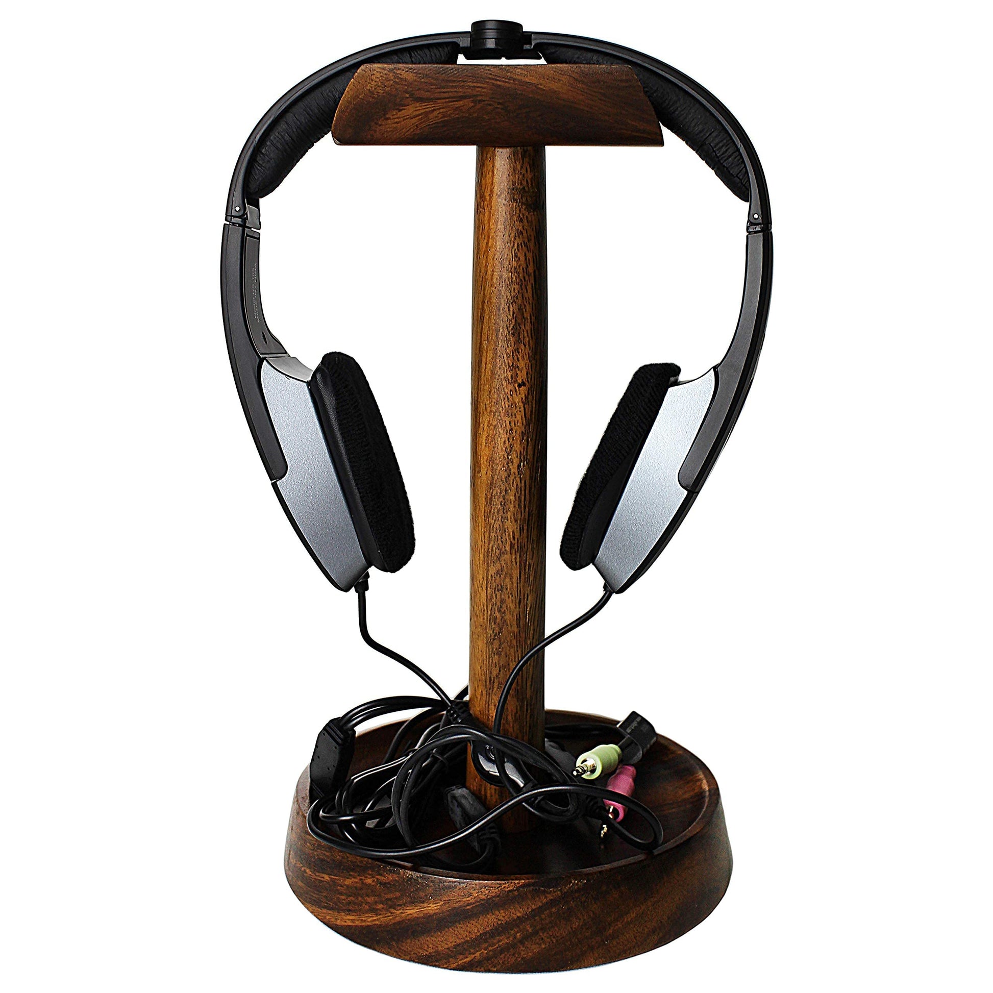- Heavy-Duty and Stable: Built to last, this headset stand for desks is crafted from high-quality, richly grained hardwood, ensuring durability and stability. The heavy-duty design keeps your headphones and devices secure and protected.